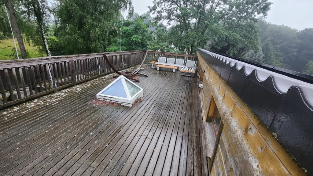 Eine riesige Dachterrasse mit ca. 60 m2 in Südausrichtung lässt Sie laue Sommerabende wie im Baumhaus genießen - natürlich mit bestem Blitzschutz. Die beschattete Südterrasse mit ca. 20 m2 verbindet Küche und Wohnzimmer. In der 38 m2 Doppelgarage finden zwei Autos und ein Motorrad samt Fahrrädern sicheren Platz.